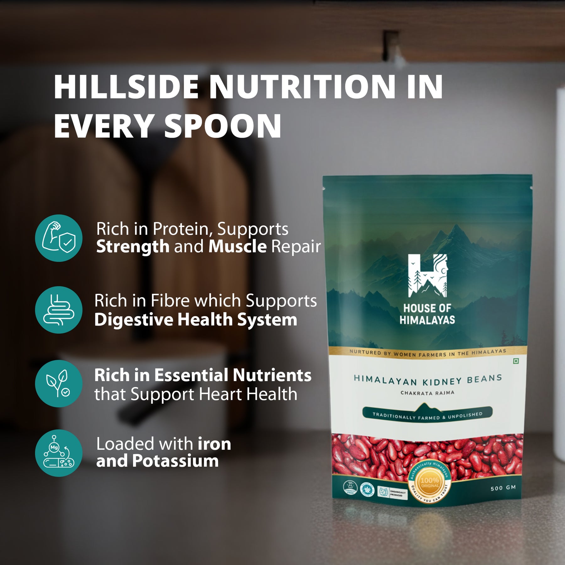 • Cultivated with Care: Imagine ruby-red beans flourishing in a haven untouched by chemicals. Chakrata Rajma is organically produced by dedicated women farmers, nurtured by the caress of the Himalayan dhoop and nourished by baarish.