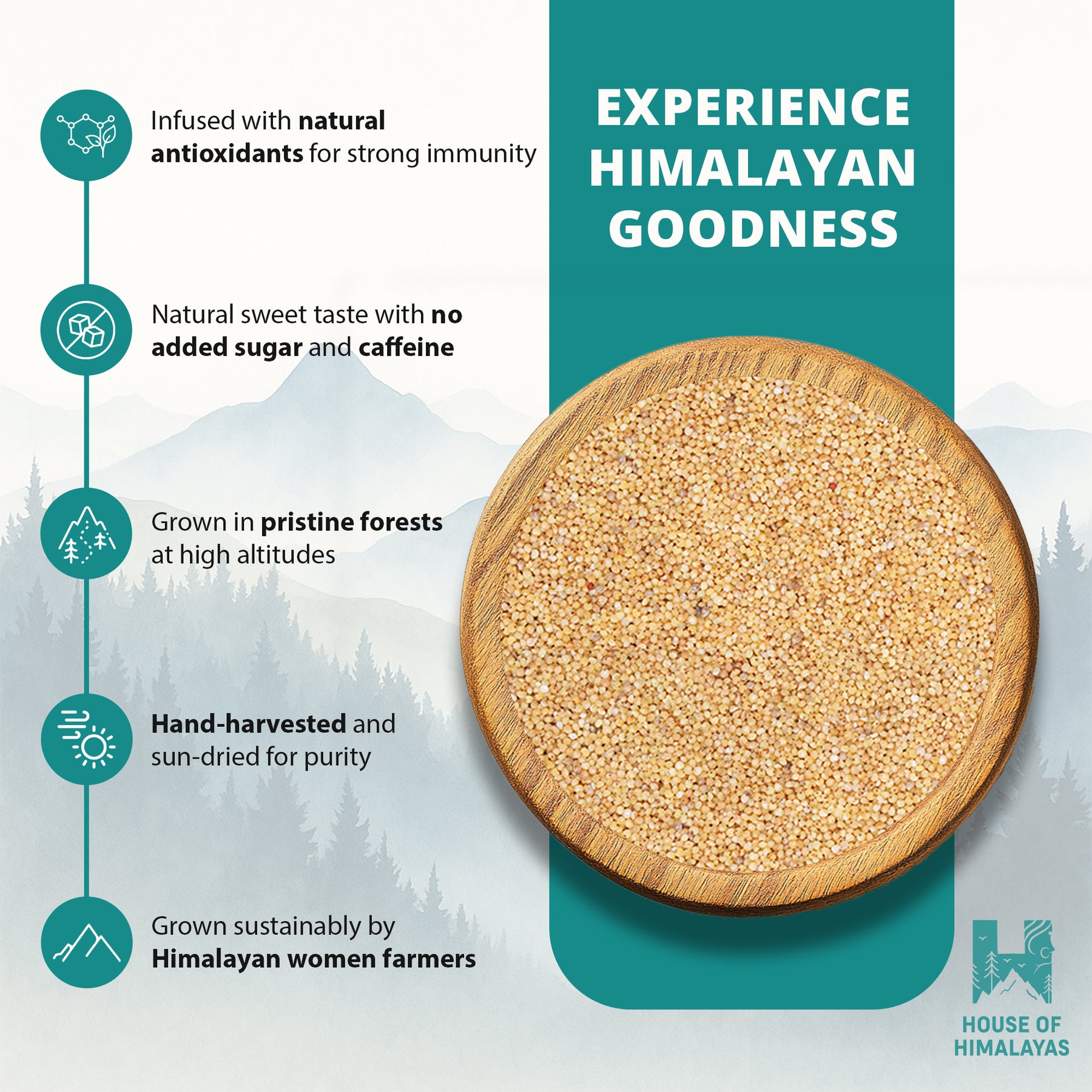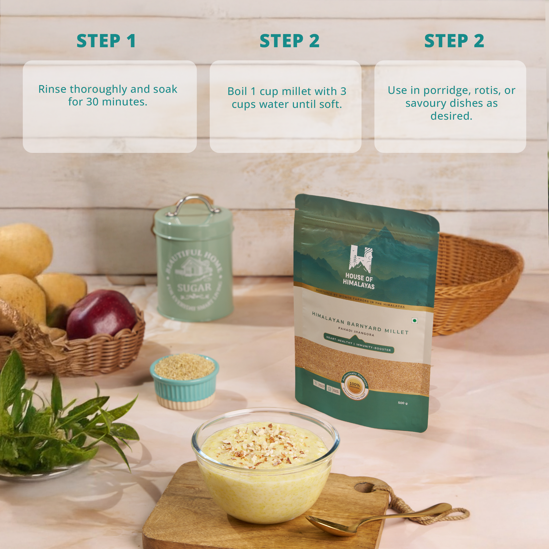 - High Altitude Advantage: Thriving at elevations of 600-1500 meters, Himalayan Jhangora benefits from cool mountain air and pure glacial water, resulting in a superior taste and enhanced nutritional profile.