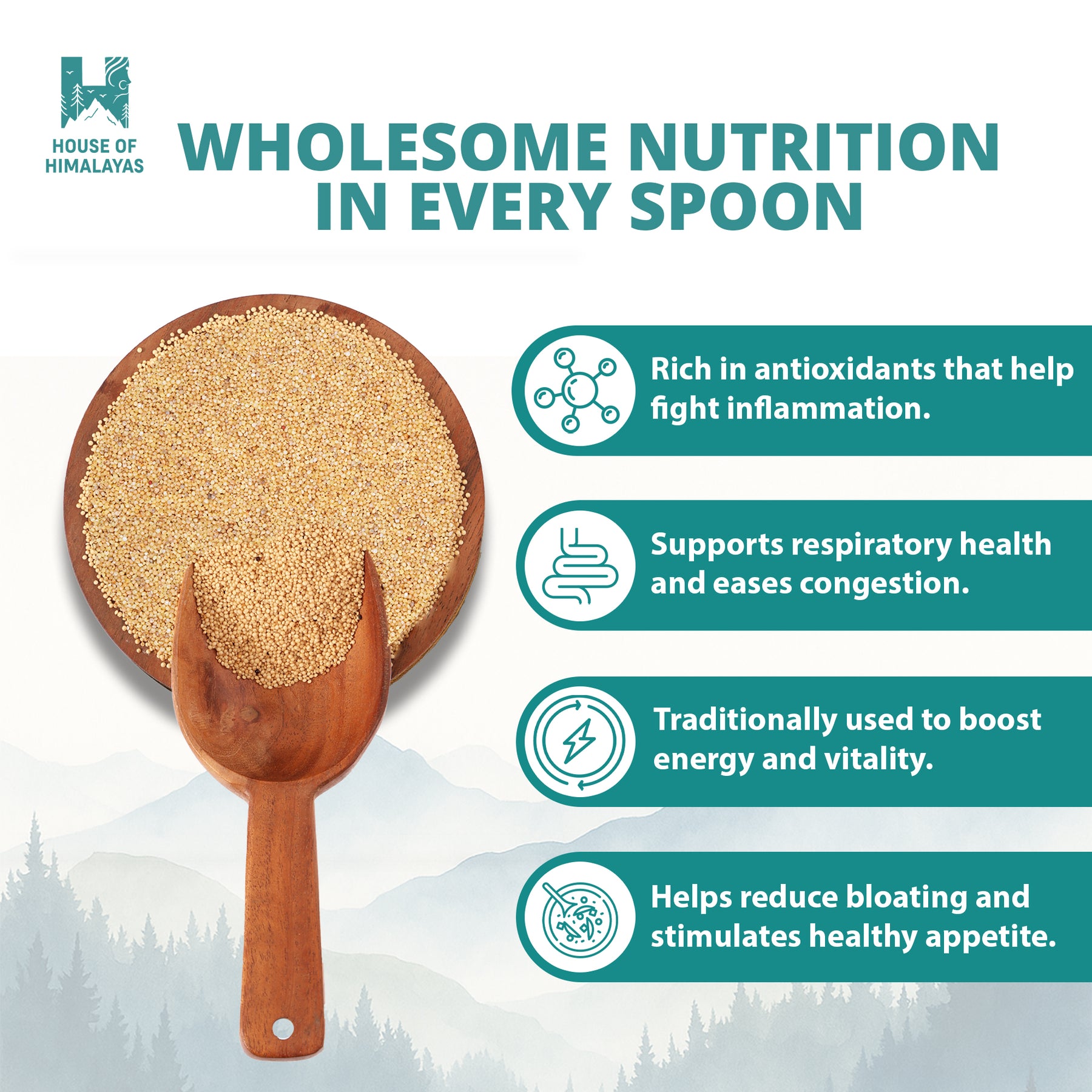 - Heirloom Treasure: Unlike fast-growing lowland millets, Himalayan Jhangora is a slow-maturing heirloom variety. This traditional crop, cultivated with care for over six months, boasts a richer taste and a more potent nutritional content.