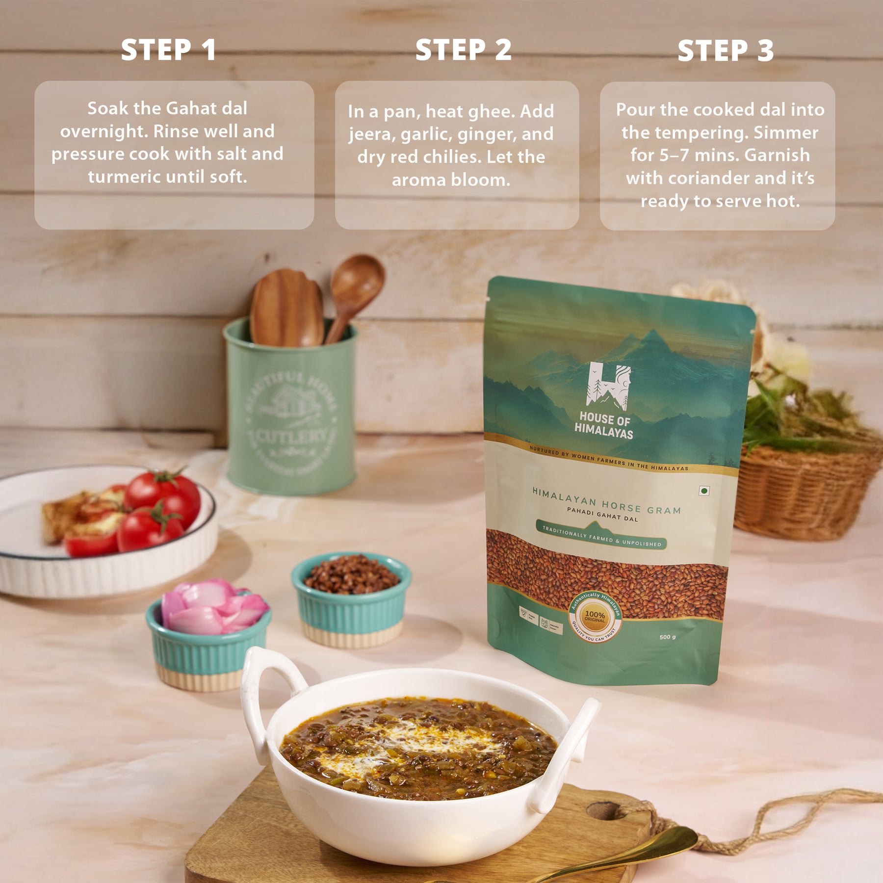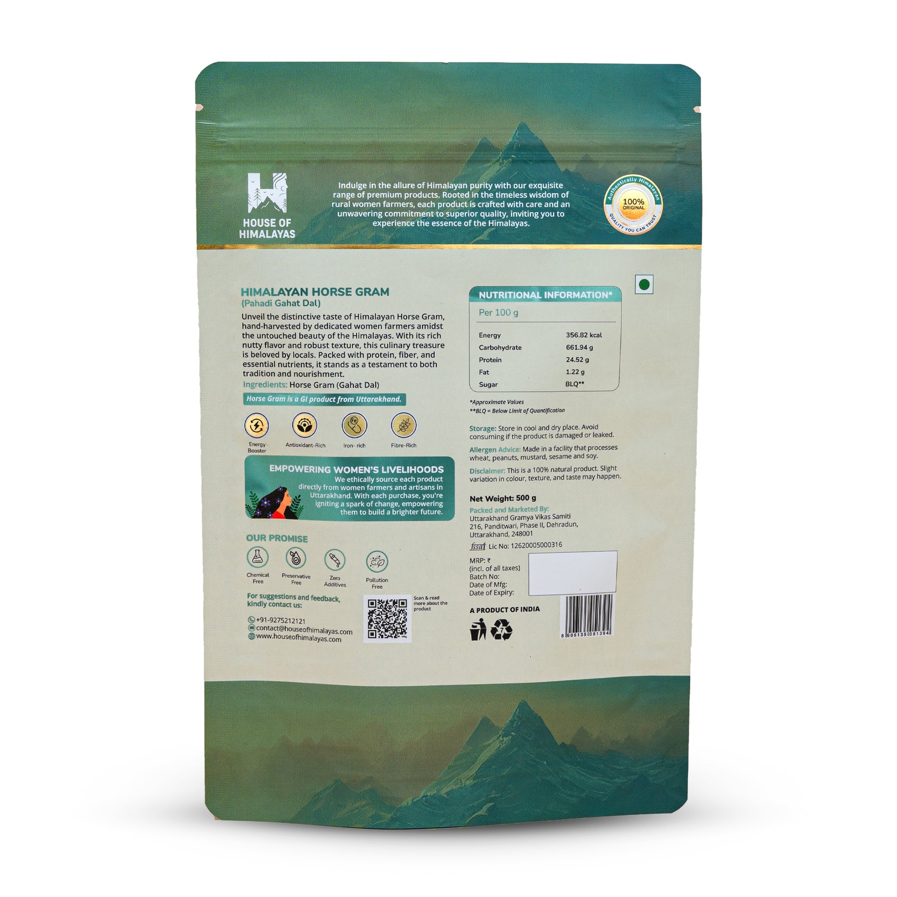 • A Gift from the Himalayas: Sourced from high-altitude farms (1500-1600 meters) in Uttarakhand, this Gahat Dal thrives in the cool mountain air and requires minimal rainfall, reflecting the region's unique climate.